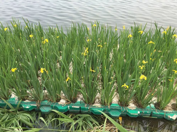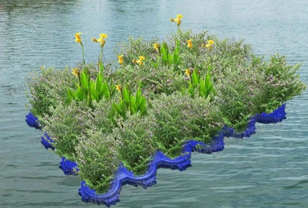 应用无土栽培技术将水生、湿生、陆生植物移植到水面上种植,使植物不仅局限于地面种植,更多地增加了生态水系的绿化覆盖量,达到水质净化和水系美化的效果,同时对藻类也有很好的抑制作用。浮岛植物不仅营造了水面的景观,在进行光合作用的时候,吸收周围的CO2,释放O2,同时净化着空气;植物在生长过程中有蒸腾作用,蒸腾作用通过植物气孔蒸发水分调节环境温度。它创造了适宜多种生物生息繁衍的环境条件,在有限区域重建并恢复水生态系统,并通过收获植物的方法将其搬离水体,使水质改善、水体变清、创建优美城市环保的目标。