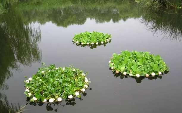 水生植物浮岛犹如一个水上陆地,在上面种植的浮水植物可以不需要另制一个平台,仅用一个简单的框架将其需要的范围圈就可以了,技术简单,见效快,成本十分低廉。大多浮水植物均适用,但一般宜选择大型挺水浮水植物,如睡莲、千屈菜、菖蒲等。