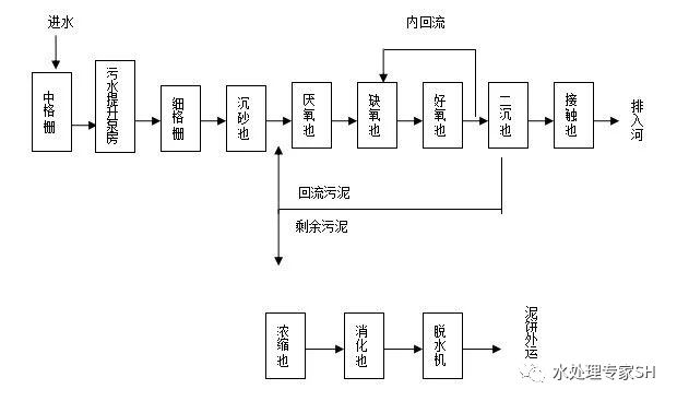 ▲A2O工艺基本流程图