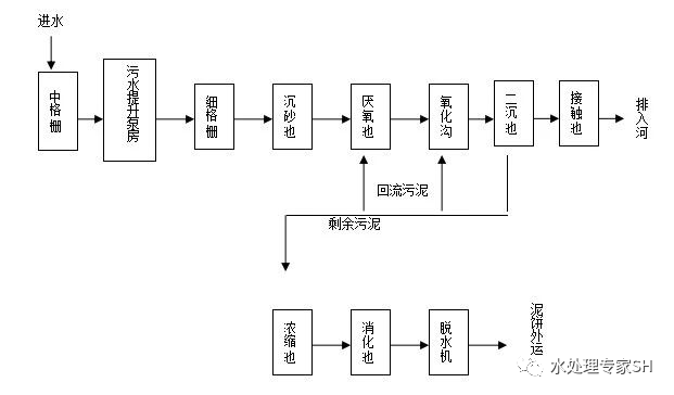 ▲厌氧池+氧化沟处理工艺流程